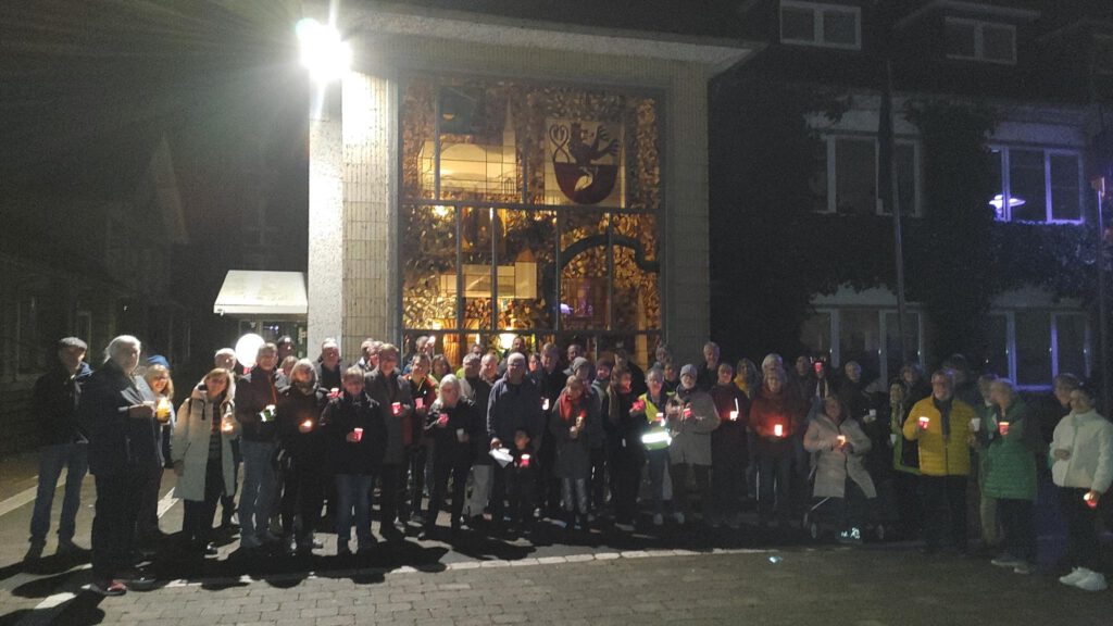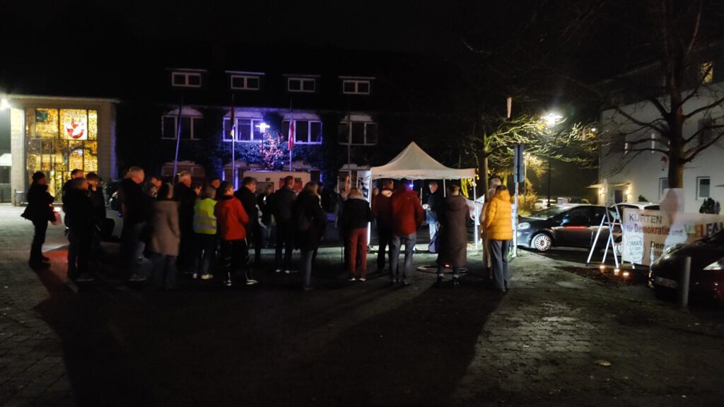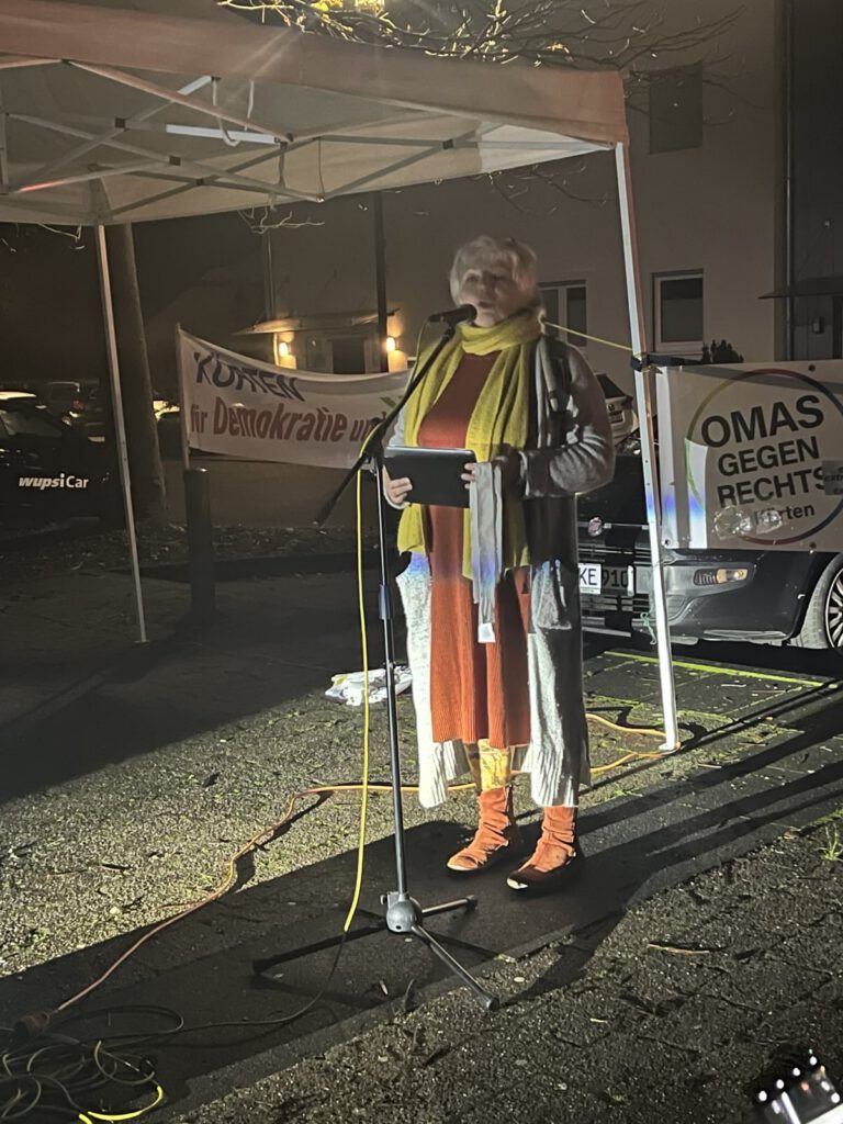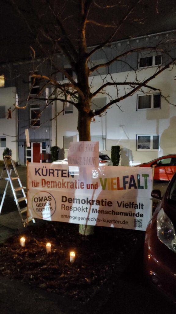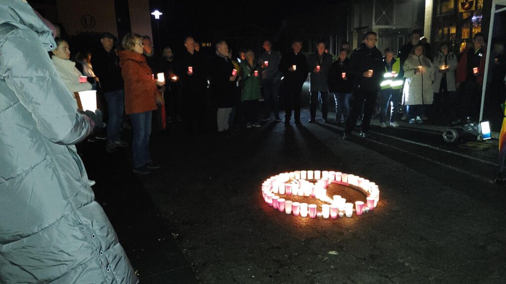 Am Sonntagabend versammelten sich rund 50 bis 60 Menschen auf dem Karlheinz-Stockhausen-Platz in Kürten, um gemeinsam der Opfer der Pogromnacht vom 9. November 1938 zu gedenken. Erstmals hatte die Regionalgruppe Omas gegen Rechts Kürten zu einer eigenen Gedenkveranstaltung aufgerufen – und setzte damit ein eindrucksvolles Zeichen für Erinnerung, Frieden und Zusammenhalt.
